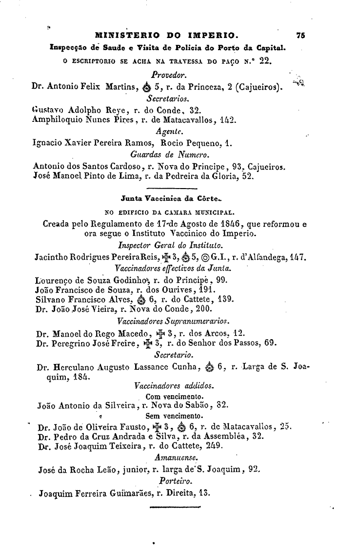 Previous (p. 74) | Next (p. 76) | 300-dpi TIFF | Table of Contents |Pagination Index |ALMANAK 1855, P. 75